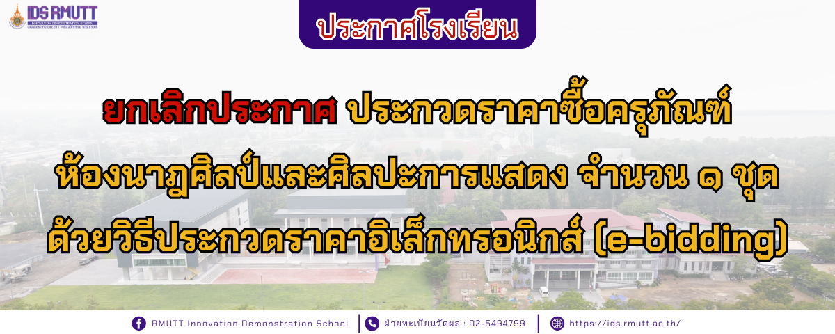 30/01/2026ยกเลิกประกาศ ประกวดราคาจัดซื้อ ครุภัณฑ์ห้องนาฏศิลป์และศิลปะการแสดง จำนวน 1 ชุด ด้วยวิธีประกวดราคาอิเล็กทรอนิกส์ (e-bidding)
