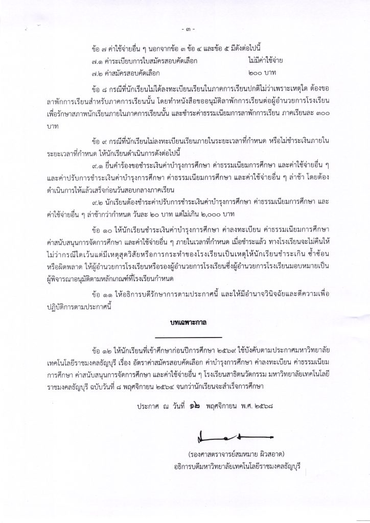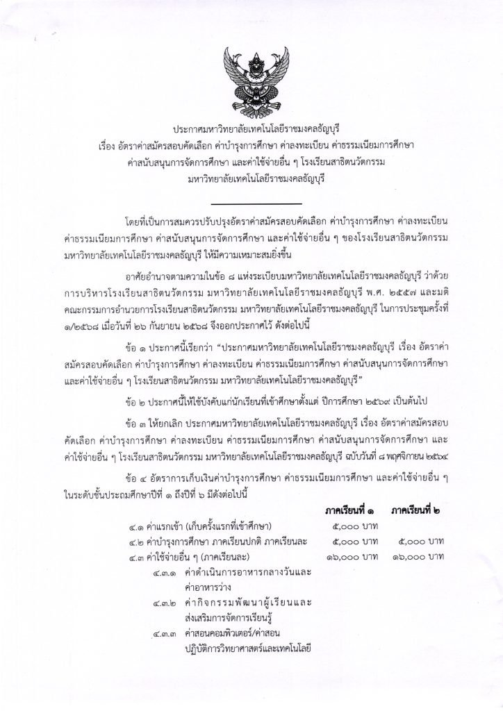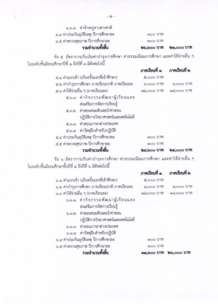 ประกาศค่าบำรุงการศึกษาสำหรับนักเรียนปีก