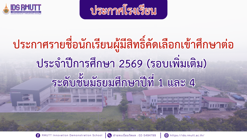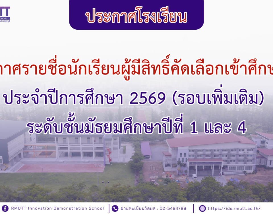 29/03/2026ประกาศรายชื่อนักเรียนผู้มีสิทธิ์คัดเลือกเข้าศึกษาต่อ ประจำปีการศึกษา 2569 (รอบเพิ่มเติม) ระดับชั้นมัธยมศึกษาปีที่ 1 และ 4[ประกาศ] รายชื่อผู้มีสิทธิ […]