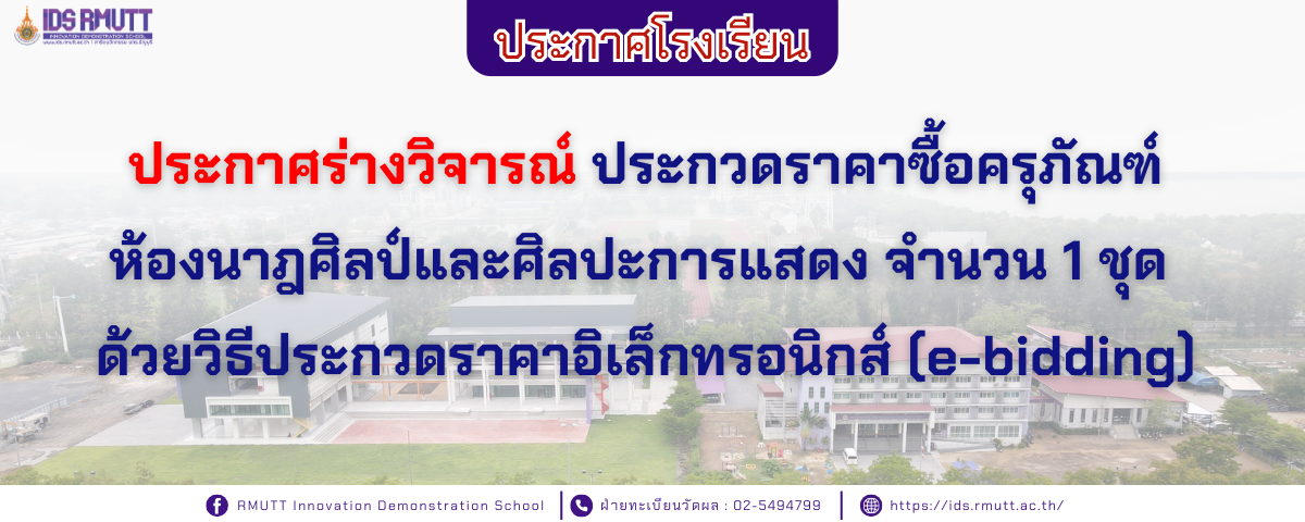 ประกาศร่างวิจารณ์ ประกวดราคาซื้อครุภัณฑ์ห้องนาฎศิลป์และศิลปะการแสดง จำนวน 1 ชุด ด้วยวิธีประกวดราคาอิเล็กทรอนิกส์ (e-bidding)