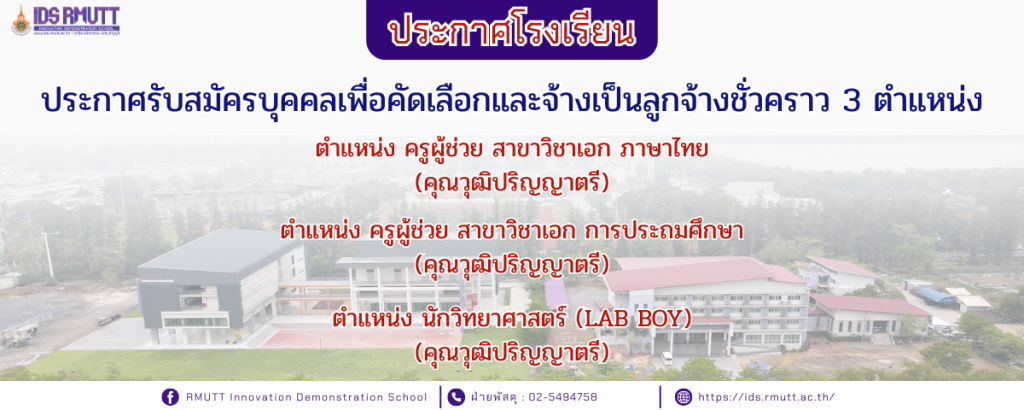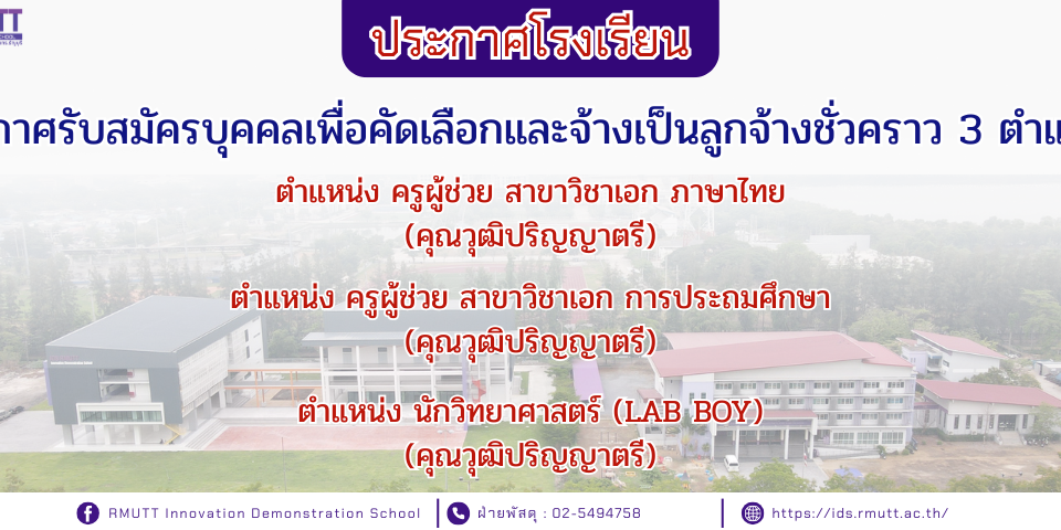 01/02/2022ประกาศรับสมัครบุคคลเพื่อคัดเลือกและจ้างเป็นลูกจ้างชั่วคราว ตำแหน่ง ครูผู้ช่วย